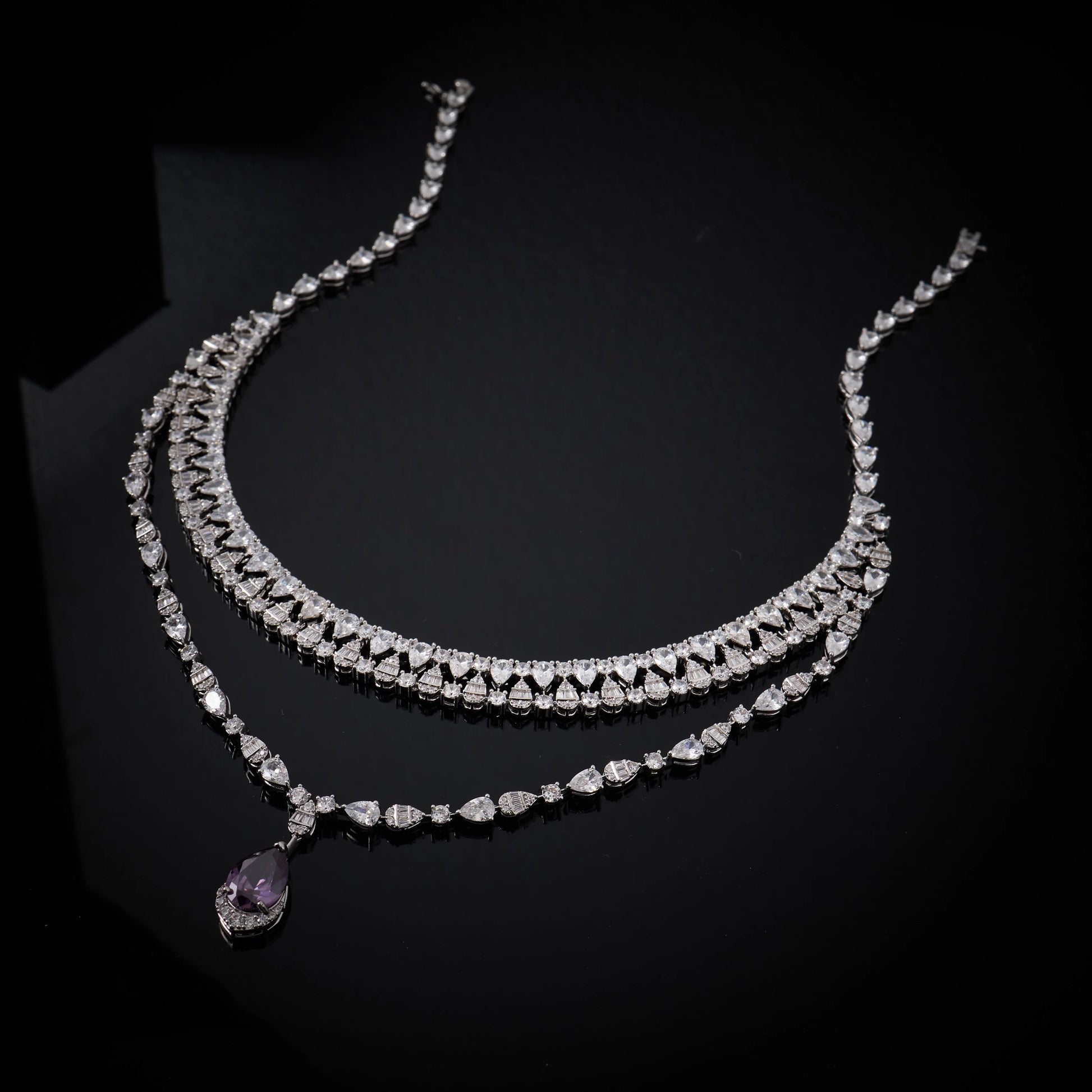 Elevate your special occasion look with this stunning Bridal Double-Layer Jewelry Set, designed with exceptional brilliance and timeless elegance. Crafted for brides and women who love sophisticated glamour, this complete set includes a matching necklace, earrings, bracelet, and ring, each adorned with high-quality Cubic Zirconia stones that deliver a radiant, diamond-like sparkle.
