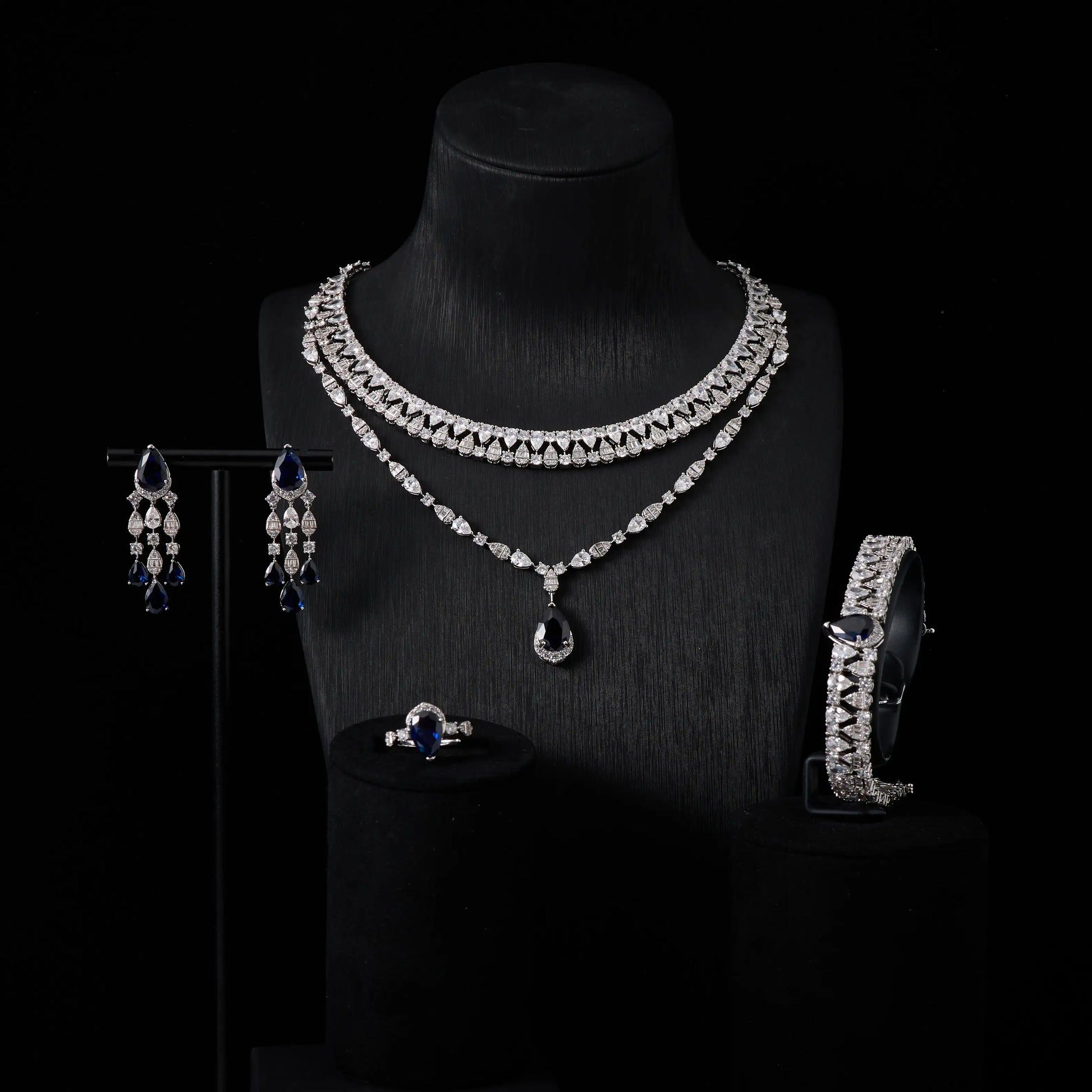 Luxury bridal double-layer jewelry set featuring cubic zirconia necklace, earrings, bracelet, and ring. Perfect for weddings, engagements, parties, and special occasions. Elegant Dubai & Saudi-style design.
