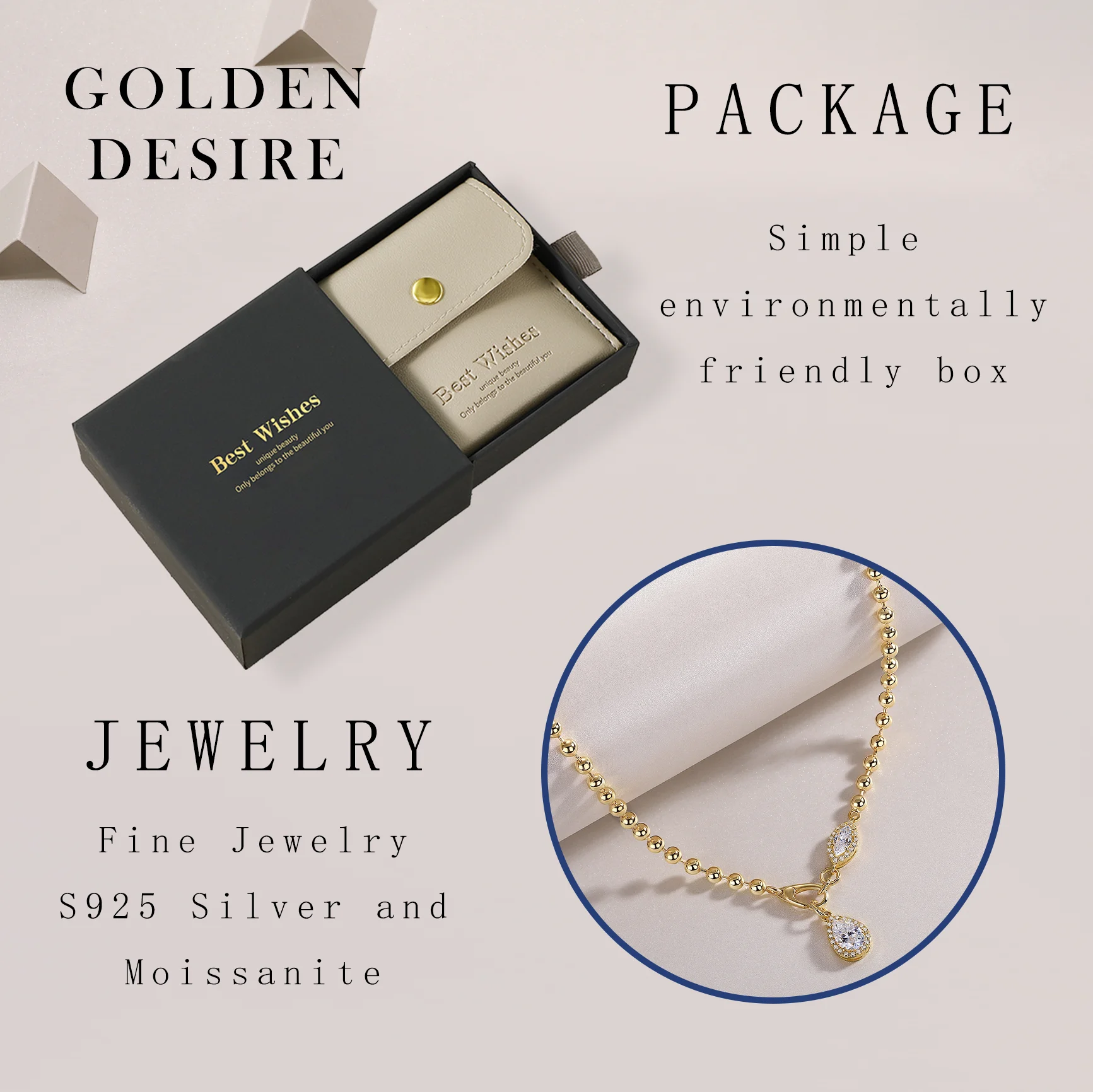 The Golden Desire Teardrop Necklace features a sparkling 2.28CT D Color VVS1 Moissanite on an 18K gold-plated beaded chain, inspired by the purity and elegance of flowing water. Perfect for parties, anniversaries, or daily glamour, this luxurious piece comes with a GRA certificate and premium vacuum packaging.