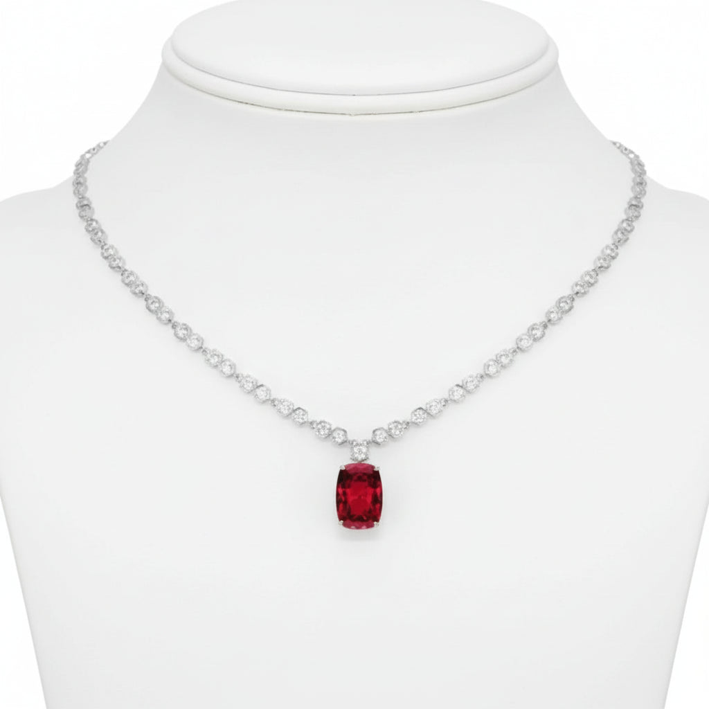 Ruby Gleam Light Luxury Pendant Necklace showcases a vivid ruby-red emerald-cut zircon set in polished 925 sterling silver, combining modern luxury with timeless elegance. Its bold rectangular design and light-luxury aesthetic make it the perfect accessory for parties, special occasions, or elevating everyday outfits.