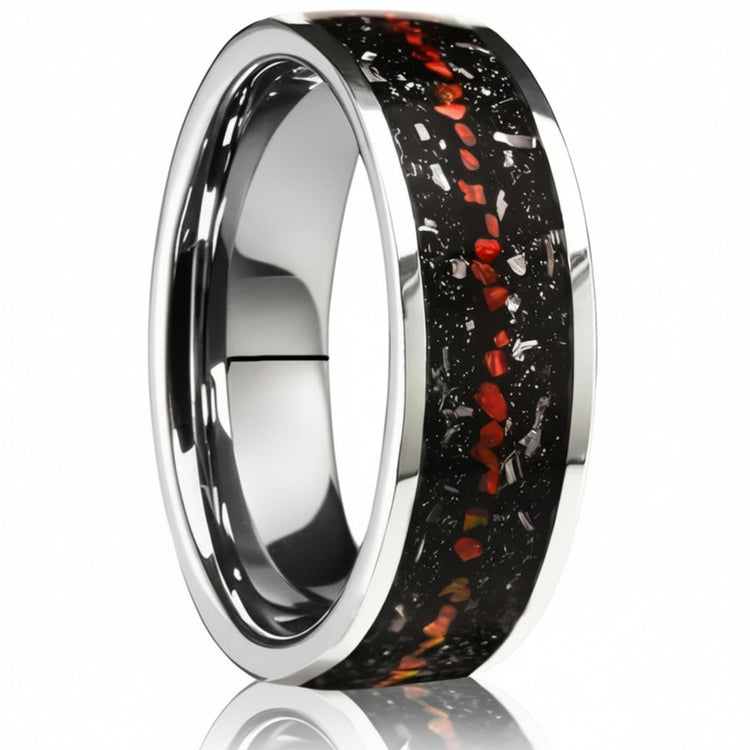Material: Tungsten carbide with crushed dinosaur bone & meteorite inlay