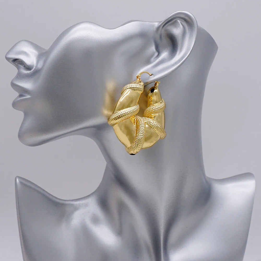 Gold Color Earring Bohemia Flower Round Drop Copper Hoop Earrings Circle