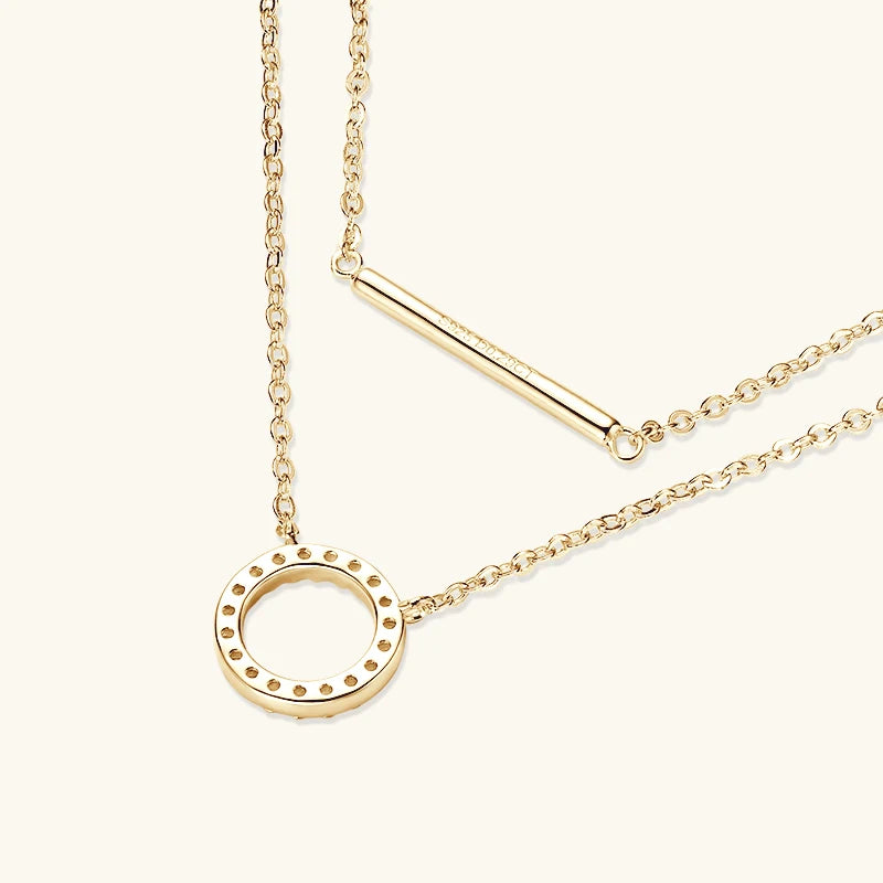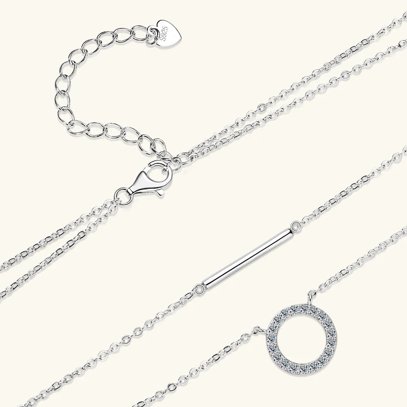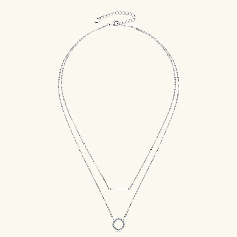 Elevate your elegance with the Lnngy Dazzling Double-Layer Moissanite Jewelry Set, a sophisticated collection crafted for women who value timeless sparkle and refined style. This exquisite set features a double-layer chain necklace with a geometric circle pendant and matching stud earrings, all set with D-Color VVS1 Moissanite, delivering brilliance that rivals natural diamonds.