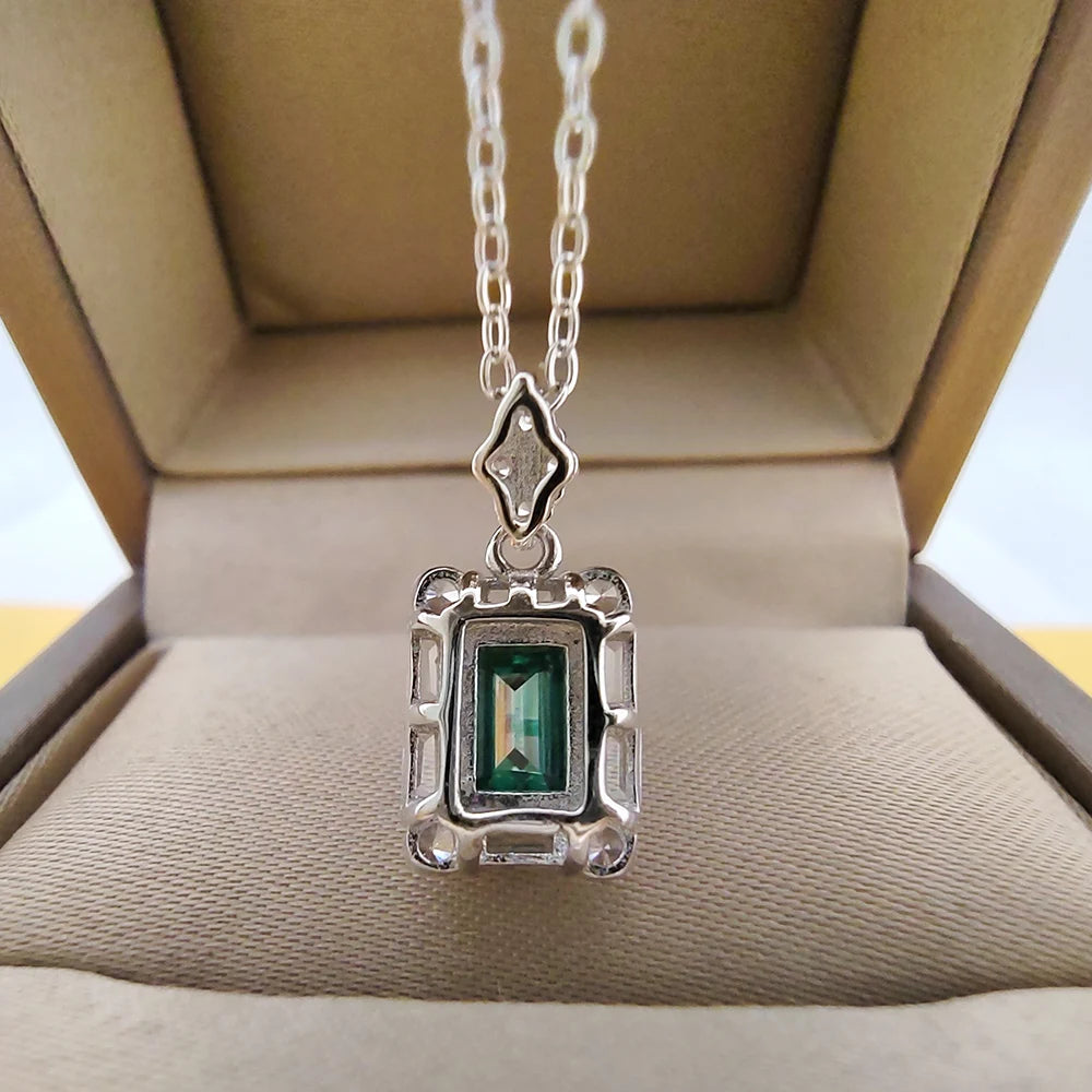 The Aurora Gem Moissanite Necklace features a stunning 1-carat green-pink moissanite in an elegant emerald cut, set in premium S925 sterling silver. With its unique color-shifting glow and modern O-chain design, this necklace brings a bold, trendy, and luxurious touch to any outfit—perfect for gifts and anniversaries.