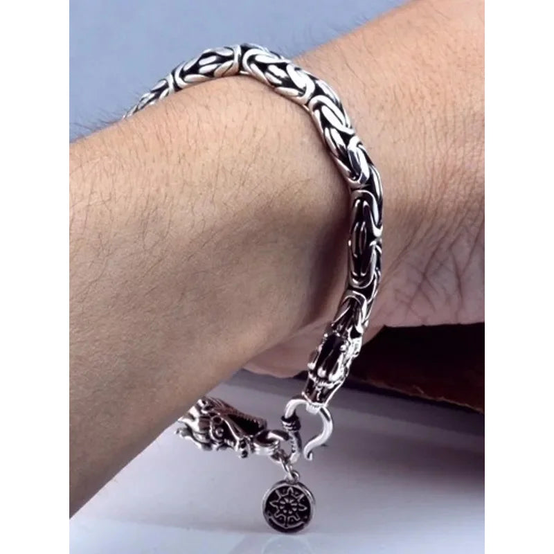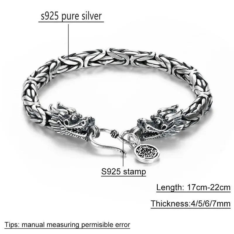 Handcrafted from 925 sterling silver, this bracelet features a dragon-inspired chain design, blending intricate artistry with industrial edge. Its durable construction and sleek silver finish make it perfect for parties, casual wear, or expressing your unique style.