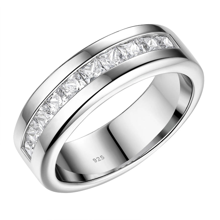 Crafted from solid 925 sterling silver with rhodium plating, this half-eternity band features 10 princess-cut D color VVS1 moissanite stones. Each stone radiates unmatched fire and brilliance, shining brighter than diamonds while offering an affordable luxury. The comfort-fit design ensures all-day wear, making it perfect for weddings, engagements, anniversaries, or special occasions.