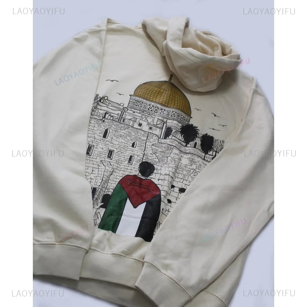 Long Sleeve Hoodies Palestine Flag Women Back Print Hoodie Sweatshirt