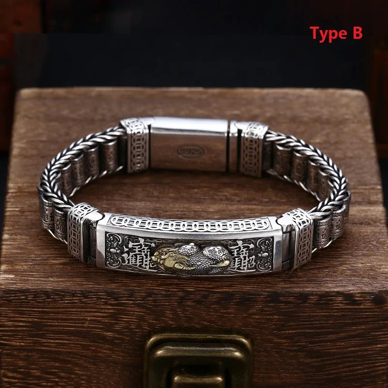 Real Silver Retro Pixiu Bracelet