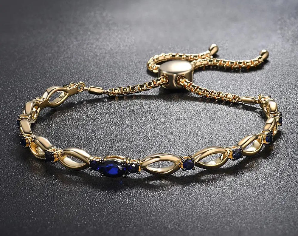 A Silver Bracelet For Women Authentic 925 Sterling Silver Blue Nano Cubic Zirconia Adjustable Bolo Bracelet