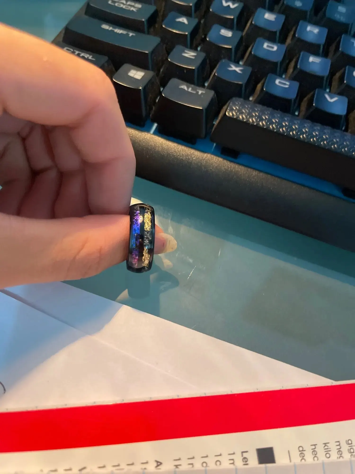 The BoldVow™ Black Tungsten Carbide Ring is a stylish 8mm wedding band for men. It features a classic channel setting with unique inlays of amethyst, color-shifting sandstone, gold foil, iron filings, and opal that evoke the look of the Crab Nebula. Crafted from durable tungsten metal, this ring combines elegance and strength, making it ideal for weddings or meaningful occasions.